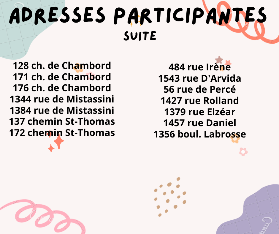 Assurez-vous de nous faire parvenir votre inscription avant le 22 mai 2022 pour que votre adresse apparaisse dans la carte interactive.